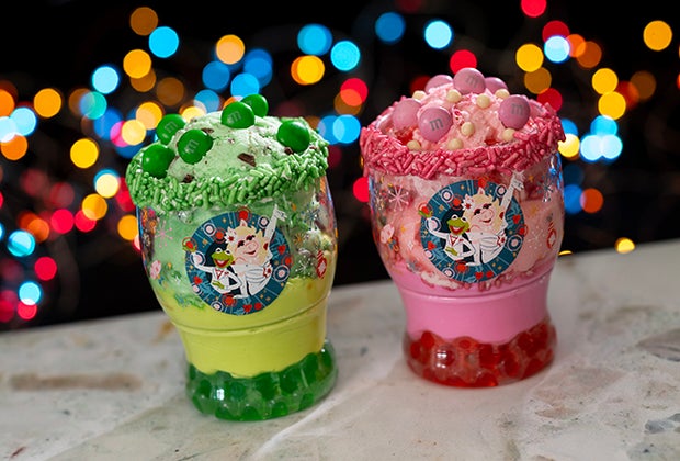 Enjoy the sweet treats at Jollywood Nights, like the Kermit Mint Whirl and Miss Piggy Strawberry Glam.